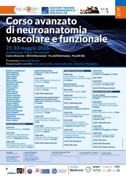 SEDE: Laboratorio di Neuroanatomia e Chirurgia “G. Cantore” Parco Tecnologico, IRCCS Neuromed – Pozzilli (IS)