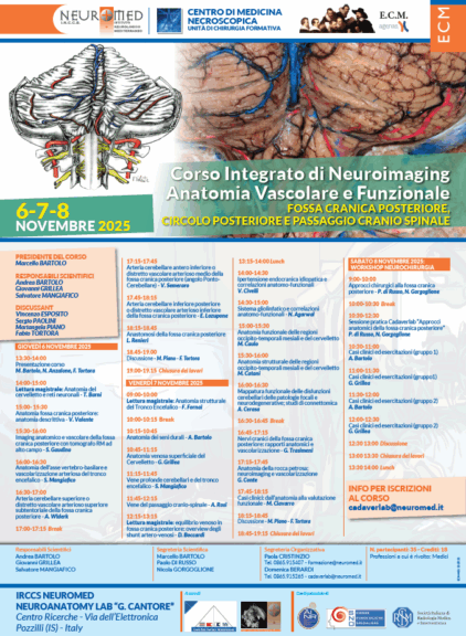 SEDE: Laboratorio di Neuroanatomia e Chirurgia Formativa “G. Cantore” Parco Tecnologico, IRCCS Neuromed – Pozzilli (IS) – Italy