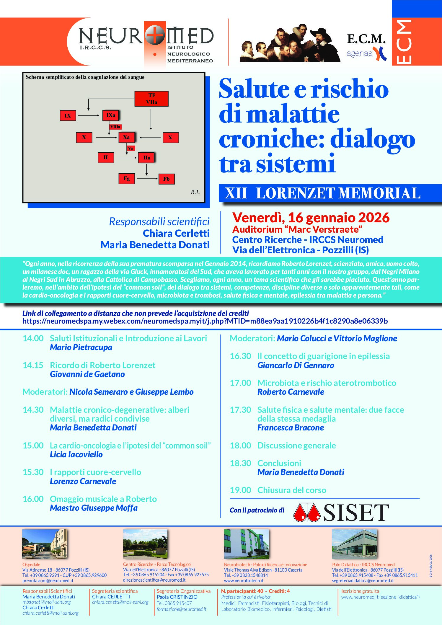 16/01/2026 “SALUTE E RISCHIO DI MALATTIE CRONICHE: DIALOGO TRA SISTEMI” – XII LORENZET MEMORIAL