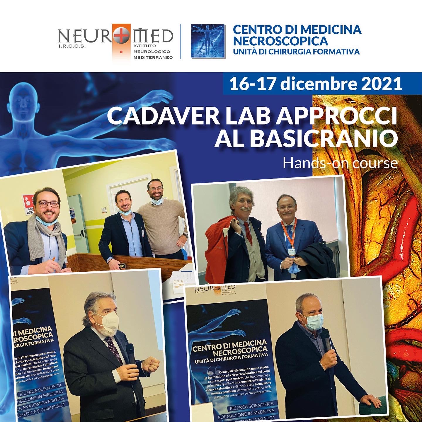 È iniziata “la due giorni” dedicata al corso di formazione per neurochirurghi “Cadaver Lab approcci al basicranio”. Il corso vede l’alternanza di momenti di formazione in aula e approcci pratici presso il Centro di Medicina Necroscopica dell’IRCCS Neuromed.